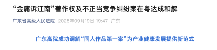最终,在法院的主持下,各方成功达成一揽子和解协议,主要包括:各方一致同意不以“剽窃”定性被诉行为;江南创作时因欠缺著作权法律知识、未事先取得金庸改编作品的许可,对金庸造成损害;江南同意不再以原样再版《此间的少年》,如未来再版,将不再使用金庸作品中的独创人物名称及相关内容;2002年由案外某出版社出版的《此间的少年》所使用的副标题“射雕英雄的大学生涯”,构成不正当竞争;对于原二审判决所确定的赔偿金额,江南已履行,各方不再就此主张变动;各方当事人签收调解书后,原一、二审判决均不再发生法律效力。